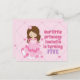 Cette carte d'invitation de fête d'anniversaire de princesse rose adorable présente une jolie petite fille brune portant une belle robe de bal rose. Personnalisez cette invitation de fête pour enfants mignonne avec le nom de votre enfant en joli violet et écrivez vos coordonnées au dos.