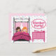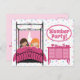 Incroyables invitations pour une fête d'anniversaire pyjama pour filles. Caractéristiques de belles étoiles pastel sur le mur d'une chambre d'enfant derrière un beau lit rose et deux enfants. Personnalisez pour la soirée pyjama de votre enfant.