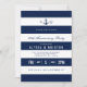 Une invitation pour une fête d'anniversaire sur le thème nautique moderne et gras avec un espace pour les monogrammes des mariés et les informations pertinentes relatives à votre événement à l'intérieur de bandes horizontales.