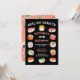 Défilez jusqu'à une fête d'anniversaire sushi avec cette fête de sushi de style cartoon kawaii pour adultes ou enfants ! Elle présente un assortiment de rouleaux de sushi avec des visages kawaii mignons.