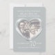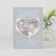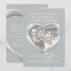 Invitation pour un 70ème anniversaire de mariage de platine. Bel effet liquide de platine en forme de cœur imprimé graphiques invitation pour un 70ème anniversaire de mariage de platine. Personnalisez avec vos propres détails de fête de mariage en platine et photo de couple. Le 70ème anniversaire est traditionnellement associé au platine et le cœur symbolise l'amour. Graphiques et conception originaux de Sarah Trett.