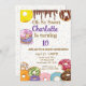 Invitez les invités à une douce célébration pour tout âge avec cette charmante invitation sur le thème des donuts.