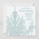 Invitation élégante pour une fête de seize ans avec lustre en cristal sarcelle et teintes roses et blanches.