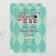 L'invitation pour une soirée de bowling présente la typographie "Bowling Night" dans un style de logo rétro moderne des années 50, avec une boule et des quilles de bowling illustrées. Incorporant des éléments de bleu, rouge, blanc et gris, des points et un fond à motif diamant. Inclut un modèle pour une personnalisation personnelle.