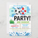 Fait une excellente invitation pour célébrer l'anniversaire d'un garçon sur le thème du soccer au bord de la piscine, la fête de fin de saison de l'équipe de soccer, la fin de l'été, la fin de l'année scolaire, ou pour toute autre occasion de fête au bord de la piscine sportive !