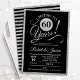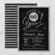 Invitation pour une soirée d'anniversaire de mariage de 60 ans en argent pailleté faux et noir. Carte d'invitation imprimée avec une police de caractères élégante et des rayures au dos. À 60 ans, c'est à boire ! Peut être personnalisée pour n'importe quelle année d'anniversaire. Parfait pour une célébration élégante d'anniversaire de diamant de soixantième anniversaire.