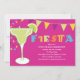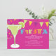 Ces amusement et invitation colorée de fiesta comporte un verre de margarita et des décorations de partie à côté du mot "fiesta" dans des couleurs coordonnées. Les gisements des textes sont entièrement personnalisables. Graphiques ©Lilly Bimble.