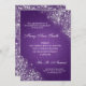 Conception élégante d'invitation de fête d'anniversaire avec le motif pourpre de scintillement sophistiqué de parties scintillantes, le nom et la date faite sur commande et le texte supplémentaire. Impressionnez votre famille et amis avec cette conception élégante et moderne. Entièrement personnalisable ! Facile à utiliser et facile à personnaliser.
