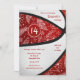 Cette mignonne invitation à la fête d'anniversaire de basket-ball présente l'image réaliste d'un ballon stylisé abstraitement surdimensionné qui a recoloré alternant panneaux rouges et blancs - un doodle motif de paislies, fleurs et plumes en blanc couvre les panneaux rouges du basket-ball - personnaliser avec les détails de sa fête - par katz_d_zynes