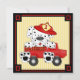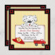 Chien chiot dalmate mignon, camion d'incendie et casquette pompier avec arrière - plan rayé jaune ensoleillé pour une adorable invitation d'anniversaire garçon. Tout ce texte est prêt pour vous à customiser avec vos informations. Si vous préférez, l'anniversaire peut être changé en deuxième ou troisième.