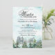 Une magnifique invitation à un anniversaire "Winter Onederland" avec un paysage de forêt d'aquarelle sur un arrière - plan enneigé. Idéal pour la fête d'anniversaire d'un bébé d'hiver.