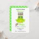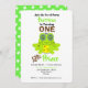 Joli graphique pour un petit garçon avec une grenouille verte amusante portant une couronne de prince, présenté ici pour un premier anniversaire mais facile à personnaliser avec n'importe quel âge et les détails de la fête d'anniversaire de votre petit prince sans frais supplémentaires