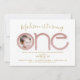 Ce design d'invitation de premier anniversaire dispose d'espace pour une photo préférée dans le "o" de "one" en parties scintillant d'or rose! Cliquez sur le bouton personnaliser pour plus de flexibilité en ajoutant votre photo et votre texte ! Des variantes de ce design, des couleurs supplémentaires, ainsi que des produits de coordination sont disponibles dans notre boutique, zazzle.com/doodlelulu*. Contactez-nous si vous avez besoin que cette conception s'applique à un produit spécifique pour créer votre propre article de correspondance unique! Merci tellement pour voir un DoodleLulu par 2 june conception de bogues!