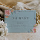 Cette première invitation de baby shower de bébé floraison horizontale oh est parfaite pour un baby shower de printemps. Le design moderne présente des fleurs d'aquarelle rose et orange sur un arrière - plan bleu clair.