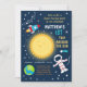 Cette mignonne invitation comprend un astronaute, un navire-fusée, un soleil et un arrière - plan étoilé.