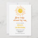 Premier voyage autour de l'invitation d'anniversaire du soleil avec un soleil aquarelle avec le texte rétro "premier voyage autour du soleil". Customisez avec vos informations pour que la mère soit. Cliquez sur "cliquer pour customiser plus loin" pour modifier le style, la taille ou la couleur de la police.