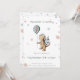 Jolie invitation de premier anniversaire en aquarelle avec un dragon tenant un ballon bleu. Illustré et dessiné par Patricia Alvarez.
