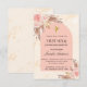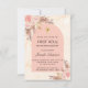 Un cadre en arche et une impression de marbre rose gold en fond. Décoré de fleurs, de roses et d'herbe de la pampa rose gold et rose. Personnalisez et ajoutez un nom et des détails.