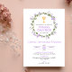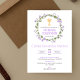 Célébrez la première sainte communion de votre enfant avec cette invitation avec une couronne de fleurs violettes et un chalice. Cette conception est parfaite pour une première communion catholique. Español / Espagnol : Celebra la Primera Comunion de tu hija con esta invitacion.