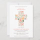 Bouche et pêche des flores d'aquarelle d'hydrangées, d'eucalyptus et de pivoines dans un découpage d'une croix. Tout le texte est personnalisable, ainsi que le backer rsvp. Customisez le titre de tout événement religieux.