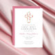 Invitation Première communion de la croix florale rose élégan