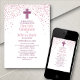 Un design moderne et contemporain de première communion pour leur grand jour ! Le confetti rose et violet et la simple typographie donnent à ce design une ambiance classique et amusante.