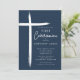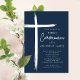 Cette invitation à la première communion bleu moderne présente un design croisé élégant, parfait pour célébrer cette étape religieuse spéciale. La palette de couleurs bleu marine en fait l'endroit idéal pour la cérémonie de la première communion d'un jeune garçon. Le design simple et sophistiqué impressionne les clients et donne le ton pour un événement mémorable.