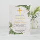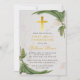 Invitation Première communion feuillage de fougère croix doré