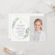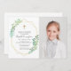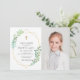 Le design est composé de sans serif et de typographie cursive joueuse sur un arrière - plan blanc rempli de cadres géométriques faux or et de plantes vertes vertes feuillues botaniques. Une simple fausse croix d'or orne le centre. Ajouter une photo personnalisée.