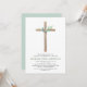 Eucalyptus de Sage Green Boy et Verdure végétale de croix Aquarelle Religieux Première (1ère) Communion Invitations.