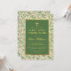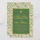 Cette élégante invitation à la première communion botanique, sans distinction de genre, a un motif feuille vert saule dans l'arrière - plan et sur le dos. Le texte est dans un rectangle vert qui a des bordures de feuille d'or faux. Il y a une (fausse) croix d'or au-dessus du texte. Tout le texte peut être personnalisé et a une couleur dorée semblable au cadre doré. Le nom est écrit dans un élégant script calligraphique, le reste en casquette. Le motif arrière - plan vintage est un motif de papier peint du 19e siècle de William Morris (1834 - 1896), appelé "Willow Bough", composé de branches de saule avec des feuilles verts, maintenant dans le domaine public.