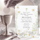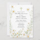 Une délicate couronne de petites marguerites blanches nichées dans un feuillage vert sauge clair encadre les détails de la première sainte communion de votre enfant. Le design fleur sauvage contemporain est ouvert et aéré. Une petite croix verte à la sauge se trouve en haut.