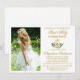Elégant moderne Première Communion Invitation avec Croix et Photo. Watercolor Floral comprend des pivoines, des fleurs blanches et de la végétation botanique. Script Gold.