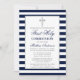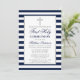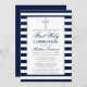 Élégante Première Sainte Communion Invitation avec Croix. Bleu et blanc. Croix d'argent.