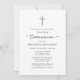 Premières cartes d'invitation de la Communion avec une Croix d'argent réaliste conçue sur mesure. L'élégante typographie de la carte est composée d'une combinaison d'écriture manuscrite unique et de texte minimaliste moderne, le tout dans des tons d'argent, de platine et d'encre noire. La carte elle-même est blanche ou peut être changée en modifiant simplement le design et en choisissant la couleur désirée. Disponible en version imprimée ou téléchargeable de haute qualité, offrant un format de téléchargement numérique instantané pour les messages texte, e-mail ou les messages sur les médias sociaux.