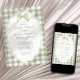 Sage green gingham baby shower invitations offer a fresh and gender-neutral option for celebrating a little one on the way. Featuring a soft green and white buffalo check border, this charming design includes a scalloped doodle frame with a coquette bow illustration and elegant script paired with clean serif fonts. The soothing sage palette is ideal for botanical, rustic, or minimalist baby shower themes, and works beautifully for both baby girls and boys. All event details are neatly arranged within the frame, making the invitation easy to read while maintaining a stylish and cohesive look. Whether you're hosting a backyard gathering, a spring brunch, or a cozy indoor event, this invitation pairs effortlessly with sage green baby shower decorations and favors for a polished and on-trend presentation. Available as printed cards or an instant digital download.