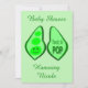 Cette incroyable invitation baby shower présente une image graphique d'un pod vert de pois contenant 3 pois verts. Le plus grand pois a un petit visage mignon avec les yeux et une bouche. De l'autre côté du pod en vert foncé, il est dit "Prêt à pop". Le texte est entièrement personnalisable afin que vous puissiez personnaliser ce charmant invitation baby shower.