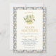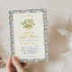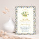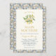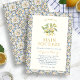 Cette charmante invitation annonce, "Elle a trouvé son pressage principal", entourée d'une luxuriante bordure en mosaïque italienne et ornée d'un bouquet d'aquarelle de citrons, de fleurs et de feuilles. C’est une invitation qui promet un rassemblement joyeux et élégant en l’honneur de la future mariée.
