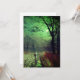 Carte présentant le tableau de John Atkinson Grimshaw, Une soirée au clair de lune (1880). Une lune fantomatique remplit le ciel nocturne de l'Angleterre victorienne tandis qu'une femme se tient debout dans une rue bordée d'arbres. Devant elle se trouve un bâtiment éclairé. Un excellent cadeau pour les amateurs de romantisme et d'Angleterre victorienne.