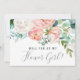 Cette carte de proposition de fleur de pivoines romantiques est parfaite pour un mariage élégant. Le design floral présente des fleurs d'aquarelle en cascade blanches, roses, pêche et bleues. Customisez la carte avec le nom de la mariée et la fille aux fleurs. Personnalisez le dos de la carte avec un message personnalisé.