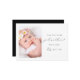 Carte de proposition de marraine simple et élégante avec texte "seras-tu ma marraine" en belle calligraphie noire et une photo sur fond blanc. Cette proposition de parrain/marraine a un style minimal et moderne en noir et blanc, avec un dos de carte de couleur noire éditable.