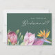 Cette invitation à la proposition de femme de chambre verte et fleurie tropicale colorée est parfaite pour votre destination boho moderne, vert, violet, mariage pêche. Le design présente un élégant bouquet de verdure couleur d'eau de plage classique et des fleurs qui peuvent inclure l'eucalyptus vert sauge, le mauve et la protéa rouge, l'hibiscus rose rousse, l'oiseau de paradis orange et bleu, et la feuille de palmier vert foncé. Le design est idéal pour un mariage de voyage simple, créatif et unique pour le printemps, l'été, l'automne ou l'hiver ! Veuillez trouver d'autres articles de papeterie mariage correspondants ou coordonnés dans le reste de la collection.