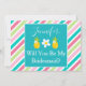 Une façon créative de demander à votre servante d'accueil de faire partie de votre mariage, cette invitation présente un joli arrière - plan rose, vert et bleu rayé en diagonale avec une boîte bleue et blanche au milieu. La boîte a un modèle pour customiser son nom avec "Seras-tu ma servante d'accueil ?" écrit en belle police blanche. Conception de l'invitation : WeddingsbyRhoadie Bandes Arrière - plans : AMBillustrations http://www.etsy.com/shop/AMBillustrations/ Ananas et fleurs : Prettygrafik design (https://www.etsy.com/shop/Prettygrafikdesign)