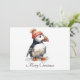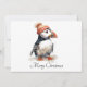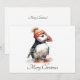 aquarelle peinture d'un mignon pouffin avec un casquette d'hiver rouge en style noël