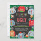 Mangez, buvez et soyez laid à votre prochaine soirée pullover moche !! Cette invitation est le moyen idéal pour inviter vos invités à votre soirée de Noël sur le thème du pullover moche ou à votre fête d'anniversaire. C'est une invitation de fête amusante parfaite pour tous les âges ! Une variété de pulls moches encadrent l'invitation avec des tasses de Noël et du houx sur un fond de tableau noir.