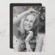 Célébrez le diplômé avec l'invitation chic, violet et or parties scintillant confetti photo obtention de diplôme. La belle et moderne invitation graduation dispose d'une parties scintillant violet et or, de la couverture de confetti, de l'espace réservé photo, et arrière - plan de tableau noir.