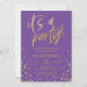Purple and Gold 50th Birthday Party Invitation Vos invités sauront que ce sera une fête amusante en regardant cette invitation! Ce design se compose d'une typographie amusante, d'un arrière - plan violet et de nombreux confettis d'or !