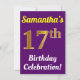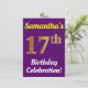 Invitation Purple, Faux Gold 17e anniversaire Célébration + N