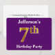 Cette conception d'invitation comporte le numéro ordinal "7ème" avec un aspect faux or. Il porte également un nom customisé et un arrière - plan de couleur violette. Les détails de l'événement sur le dos peuvent être customisés. Il pourrait être utilisé pour les invitations à la fête du septième anniversaire de quelqu’un. [~Z0000014]