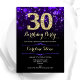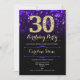 30e anniversaire invitation de fête. Design élégant violet avec de l'or de parties scintillant imitation. Dispose de diamants élégants, lumières de livres et police de script. Femmes ou anniversaires invitations. Idéal pour une fête d'anniversaire pour adultes. Personnalisez avec vos propres détails. Message-moi si vous avez besoin d'une personnalisation plus poussée. Invitations Zazzle imprimées ou téléchargement instantané modèle imprimable numérique.
